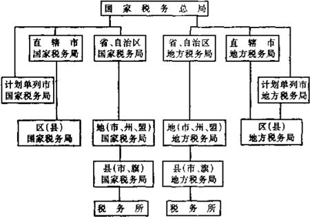 | 释义 | 中国的税收管理体制 国家税务总局是国务院主管国家税务工作的职能机构。税务管理主要有两个方面:税收管理体制和税收的征收管理。 一、国内税的税务管理 这一工作由国家税务局系统和地方税务局系统分别进行。 1.全国共设四级税务机构:国家税务总局和省(自治区、直辖市)、地(省辖市、自治州、盟)、县(市、自治县、旗)国家税务局及地方税务局。征收分局和税务所是直接从事税收征收管理的税务机关。征收分局按行政区划、经济区划或按行业设置。税务所按税源分布、经济区划或行政区划设置。 国家税务局系统实行垂直领导的管理体制,在机构设置、人员编制、领导干部管理和经费等各方面,按照下管一级的原则,实行垂直管理。 地方税务局系统:省以下地方税务局实行垂直管理,也就是说,对省(自治区、直辖市)以下地方税务局实行上级税务机关和同级政府双重领导、以上级税务机关垂直领导为主的管理体制,即地、市以及县(市)地方税务局的机构设置、干部管理、人员编制和经费开支由所在省(自治区、直辖市)地方税务机构垂直管理。 2.国家税务局系统负责中央税和共享税的征收管理,包括:增值税,消费税,外商投资企业或外国企业所得税(包括3%的地方所得税),资源税(海洋石油部分),证券交易的印花税,中央与地方所属企、事业单位组成的联营企业、股份制企业的所得税,中央企业所得税,地方银行和外资银行及非银行金融企业所得税,铁道部门、各银行总行、各保险总公司等集中缴纳的营业税、所得税和城市维护建设税。 3.地方税务局系统负责地方税的征收管理,包括:除中央税和共享税以外的其他国内税,即:营业税(不含铁道部门、各银行总行、各保险总公司集中缴纳的营业税),地方企业所得税(不含上述地方银行和外资银行及非银行金融企业所得税),个人所得税,资源税(除海洋石油部分以外),城镇土地使用税,固定资产投资方向调节税,城市维护建设税(不含铁道部门、各银行总行、各保险总公司集中缴纳的部分),房产税,车船使用税,印花税(不含证券交易的印花税),屠宰税,农牧业税,农业特产税,耕地占用税,契税,遗产和赠与税(未开征),土地增值税,及其他地方税种。 4.税收征管法把税收征纳双方在税收管理过程中享有的权利、义务,承担的责任和应遵循的制度,以法律形式规定下来,主要包括:税务登记,账务、凭证管理,纳税申报,税款征收,税务检查和违章处理等。