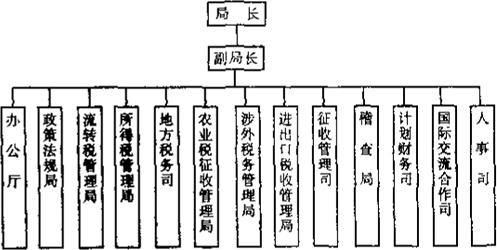 图1-2 中国国家税务局组织机构图 二、关税管理 这一工作由海关总署系统进行。 1.中国海关担负进出境管理方面的四项基本任务:监管进出境的运输工具、货物、行李物品、邮递物品和其他物品;征收关税和其他税、费;查缉走私;编制海关统计。 2.中国海关的机构:海关总署统一管理全国海关;直属海关由海关总署直接领导;其余海关由直属海关领导。海关机构的隶属关系由海关总署根据需要确定,不受行政区划的限制。 3.关税的征收。对进口货物征收关税的基本程序是:审定完税价格,确定税则归类和无代价抵偿进口货物的税款处理。对出口货物的征收关税仅限于国家规定的极少数出口货物。 4.关税的基本纳税方式是由接受按进(出)口货物正式进(出)口的通关手续申报的海关逐票计算应征关税并填发关税缴款书,由纳税人凭以向海关或指定的银行办理税款交付或转账入库手续后,海关凭银行回执联办理结关放行手续。