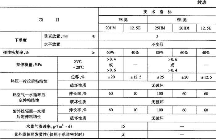 表8-46 中空玻璃用弹性密封胶的物理性能