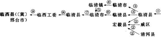①1912年称临清州;1913年改为临清县。②1942年划临清县、威县、清河县三县邻接地建宏毅县。③1946年临清市、县并置。④1949年原临清市改称临清镇。⑤1954年临清镇改设临清市。⑥1958年撤销临清县,并入临清市。⑦1963年废临清市,改称临清县。⑧1964年12月析临清县卫运河以西5个区置临西工委。⑨1965年4月9日置临西县。