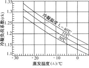 图4-4-18 氨制冷压缩机冷凝负荷系数 3.冷凝器的耗水量Gw