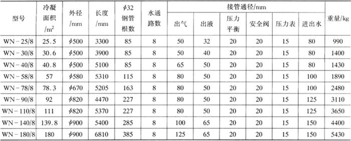 表4-4-30WN型卧式冷凝器规格