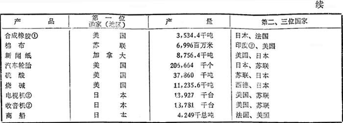 注:①苏联产量数字不详。 ②为1978年产量。 资料来源:联合国《统计年鉴》1978年;联合国《统计月报》1980年4月、7月、8月,1981年1月,联合国《工业统计年鉴》1978年。 |