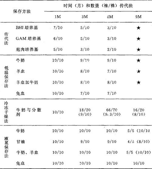 | 释义 | 主要方法 (一)传代培养保存法 这种方法是一般检验室都在使用的方法。从保存厌氧菌为目的来说,应注意如下事项。 1.用于传代保存厌氧菌的培养基 (1)培养基中含糖类物质的浓度在可能的范围内应尽量降低。 (2)培养基中其他营养物质的浓度也只以能使生长发育为度。 (3)培养基中注意添加还原剂如硫乙醇酸盐、L-半胱氨酸等。 (4)尽可能使用新鲜或预还原处理后的培养基。 (5)许多厌氧菌能酵解碳水化合物产酸,故宜预先在保存培养基中加入弱碱性物如无水碳酸钙(0.1g/20ml),或用几小片大理石代替。 (6)传代培养基中加入适量的琼脂(0.1%,0.25%,或0.5%,视琼脂牌号而异),既可防止保存培养基干缩,又可阻止分子氧侵入培养基中。 (7)保存培养基中加入适量的Eh指示剂如美蓝水溶液或刃天青溶液(0.1~0.25mg%)。 2.注意培养温度和菌种保存的温度用于保存的菌种,一般选用稍低于厌氧最适温度进行培养(对人体分离菌,笔者实验室采用35℃)。以避免因繁殖速度过快,代谢产物浓度过高,使培养基的pH值改变而影响活菌数量。此外,保存温度以室温低于18~20℃避光保存为佳,否则极易造成保存菌株的死亡。这是因为低温时分子氧易进培养基之故。我们曾进行过比较,至4℃冰箱中传代保存厌氧菌2个月左右,约死亡80%,而在20℃左右的室温中保存同种厌氧菌,死亡率小于20%。 3.其他应注意事项 (1)从增菌培养基接种到保存培养基时,我们使用巴氏(Pasteur)吸液管吸取菌浓度1010/ml以上的菌液0.2ml,直接插入保存培养基试管的底部,注意勿将气泡带入,最好在过铜柱气体喷射下操作。不能用白金环(针)接种。在大气中操作时易使厌氧死亡。我们认为在厌氧菌罩中接种最好。 (2)一般1~3个月传代1次,不超过6个月,传代时间视所保存的菌种而异。 (3)为防止保存培养干缩,可加灭菌的20%甘油或1cm厚的灭菌液体石蜡,用异丁烯橡胶塞或螺盖拧紧。 (4)被保存的菌株至少传种2管(笔者传种3~5支小试管)。 (5)进行保存菌株时应定时对其性状(生化性状、菌落形态、革兰氏染色性和菌体形态及色素产生等)做检查。 4.传代培养基的选择 不同属种的厌氧菌选择相应的培养基保存。 (1)放线菌肉汤培养基:硫酸钾15.0g,硫酸镁0.2g,氯化钙0.01g,肉膏25.0g,葡萄糖5.0g,半胱氨酸1.0g.酵母5.0g,可溶性淀粉1.0g,胰酶酪蛋白4.0g,蒸馏水100ml,pH6.9。 (2)韦荣氏球菌培养基:胰酶酪蛋白5.0g,酵母3.0g,乳酸钠15.0g,硫乙醇酸钠0.75g,吐温-800.75,葡萄糖1.0,蒸馏水1000ml,pH7.5。 (3)巨形球菌培养基:硫酸二氢钾1.6g,磷酸氢钾3.2g,60%乳酸钠1.6ml,酵母4.0g,氯化胺0.5g,氯化钙0.2g,硫乙醇酸钠0.45g,氯化镁0.2g,琼脂1.0g,蒸馏水1000ml,pH7.0。 (4)庖肉培养基:新鲜配制的牛肉浸液和牛肉渣,按10∶1装入,上盖3~4mm凡士林,高压灭菌后备用。 笔者认为,芽孢厌氧菌使用庖肉培养基,一般无芽孢厌氧菌使用GMA培养基为好。无芽孢厌氧菌如用庖肉培养基,保存时间短,效果也差。 (5)GMA培养基: (6)评价:传代保存厌氧菌的方法比较简便,操作条件和技术要求不高,容易做到和推广,效果可以。不足之处:①易污染杂菌或引致死亡;②易发生包括生化性状、菌体形态、菌体形态、色素产生、毒力、抗结构等遗传性状的变异;③大批菌种保存仍然费时费力,定时传代也费事。菌种在传输途中不方便。 (二)预还原灭菌培养基保存法 1.方法 预还原灭菌培养基开始由Hungate在无氧条件下使用转管法(Roll tube method),以后又改进为气体喷射法制作。国内已有过铜柱装置。方法都是将二氧化碳气流通过铜柱,使其成为高度除氧,在高纯度二氧化碳喷射下排除培养基中的氧气,再移殖或接种细菌至预还原灭菌的培养基上。其注意事项与传代保存法同。铜柱中的铜使用后,可以通过氢气还原,反复使用。 2.用途 此法开始于医学微生态学研究中,后在日本等国较广泛地用于厌氧菌的保存中,一般用预还原GMA培养基加入几小片无菌大理石,能保存多种无芽孢厌氧菌,保存6个月至1年已获成功。尤其用于从口腔分离的产黑色素普氏杆菌等,保存效果好。我们从日本引进的参考菌种就是用此法保存的。开启上述引进菌种时,存活率也较高。 3.评价 本法因接种、培养过程都在高纯度的二氧化碳气中进行,除在厌氧菌的分离、分纯、培养时使用外,还用于菌种的保存。此法要求一定设施,操作仍较繁杂,实验室如具上述条件即能应用。 Justesen等发现,在纯二氧化碳环境中,几乎完全抑制了梭状芽孢杆菌属中的产气荚膜杆菌的生长,此外消化链球菌属如暴露于其中,经1小时也可受到抑制或杀死,对脆弱类杆菌则无影响。因此,在保存梭菌属和消化链球菌属时用此法则应注意其不良后果。 (三)低温保存法 对于易致死亡较难保存的无芽孢厌氧菌,最好选用低温保存法。用此法,有时可保存厌氧菌长达数年。 1.预冻措施 厌氧菌在低温保存过程中,容易形成菌细胞外部和内部冻结,视冷冻速度保存的菌细胞大小及种类而异。因此使用低温时,应尽可能避免细胞内冻结。一般都应预冻。此外,对数期生长繁殖的菌细胞最好使用低温保存,因它们对低温抗力强。例如笔者对脆弱类杆菌菌株用24~48小时的培养物,优杆菌属则选用36~72小时的培养物为好。同时还选择较高菌浓度来保存,菌浓度越高,存少率越高,保存期也长。笔者将要保存的菌选用最佳增菌培养基,先增菌后再保存。准备用低温保存的菌液,一般不宜加电解质(如氯化钠)。即使要加