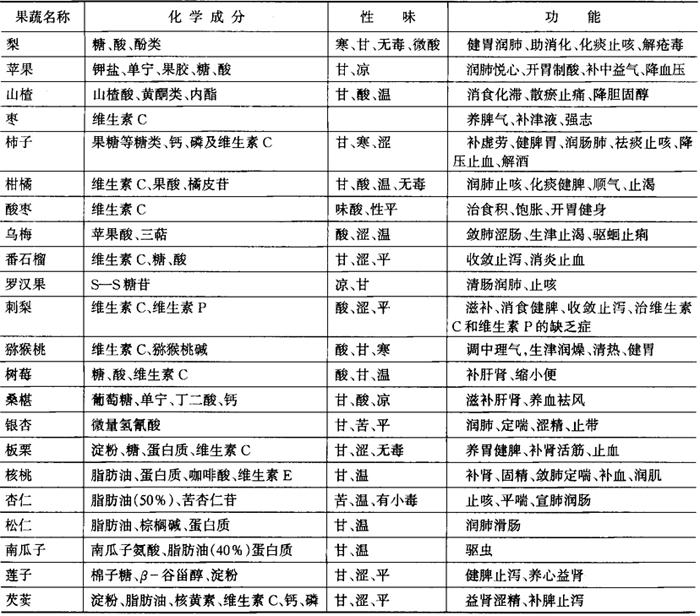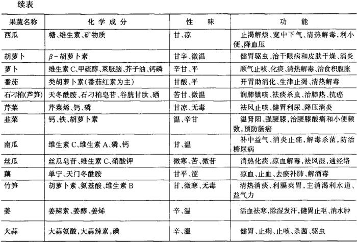 | 字词 | 主要果蔬的药用与食疗作用 |