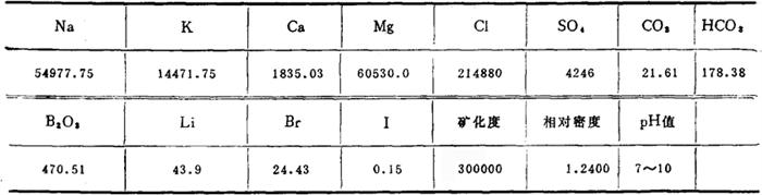 注:分析单位为中国科学院盐湖研究所。 表4-1-15 昆特依盐湖晶间卤水有益组分(据青海地质-队)