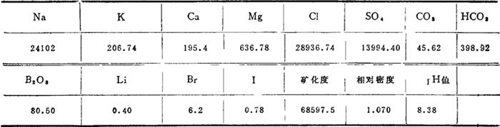 注:分析单位为中国科学院盐湖研究所。 表4-1-21 艾丁湖晶间卤水成分(mg/L)