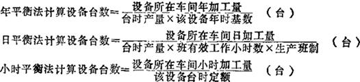 ①表中万件数指自然件”: ②不平衡系数也即成型车间的贮备能力参数。 (二)生产能力平衡法设备台数的计算公式 根据设备额定生产能力进行车间需用设备台数的平衡计算,视生产的具体特点,可选择不同生产时间分段下的平衡计算。通常有年平衡法、日平衡法、小时平衡法等。 基本公式为:
