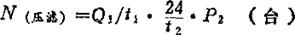 式中 N——设备台数,台; Q1——物料年加工量,t(干基)/a; t1——设备年工作日,d/a; t2——球磨机每磨的生产周期(包括研磨、装出料辅助时间等),h/次; 24/t2——每天球磨生产周期数,次/d; P2——球磨机每磨加工(装载量)物料量,t(干基)/台·次。 2.压滤机台数的计算公式