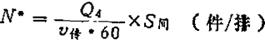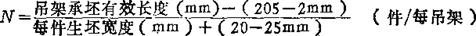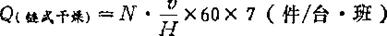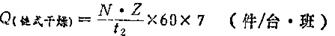 式中 Q(链式干燥)——链式干燥机的生产能力,件/台·班; N——每吊架承放坯数,可按下式进行计算: