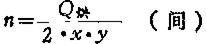 式中 n——需用烘房间数,间; Q烘——干燥器容坯总数,件; 2——两排式烘坯车室式烘房; x——室式烘房(单排式)烘坯车数量,辆/间; y——每辆烘坯车上的承坯量,件/辆。 (2)室式烘房间数的计算公式二