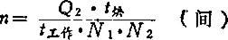 式中 n——干燥室(室式烘房)间数,间; Q2——半成品干燥量,件/d; t烘——干燥周期,h; t工作——干燥室的工作时间,h/d; N1——干燥室的容车数,辆/间; N2——干燥车的装载量,件/辆。 5.倒焰窑、棱式窑座数的计算公式