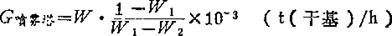 式中 W——喷雾干燥塔每小时的水蒸发量,kg水/h; W1——泥浆含水率,%; W2——出粉含水率,%; G喷雾塔——喷雾干燥塔每小时的产粉量,t(干基)/h。 3.连续式链式干燥机产量的计算公式 (1)根据有效吊架数及班运转周期数计算生产能力