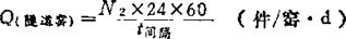 式中 Q(隧道窑)——隧道窑的日产量,件/窑·d; N2——窑车装载量,件/辆: 24——日有效工作小时,h/d; 60——每小时分钟数,min/h; t间隔——推车时间间隔,min/辆。 5.辊道窑小时生产能力的计算公式