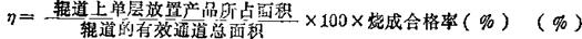 式中 Q(辊道窑)——辊道窑的小时产量,m2/h; L——辊道窑的有效窑长,m; B——辊道窑的通道内宽,m; η——辊道平面(输送承坯面)的利用系数,国内一般取40%、国外平均取60-80%;