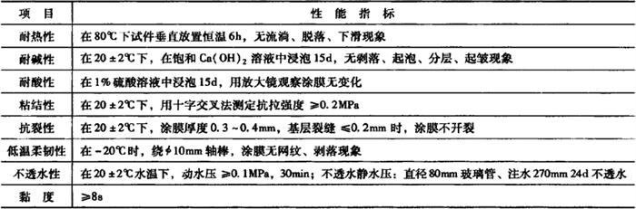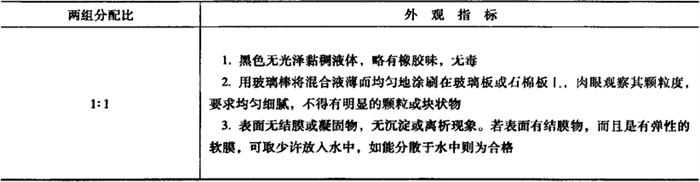 表10-47 JG-2型防水冷胶料混合液的技术性能指标