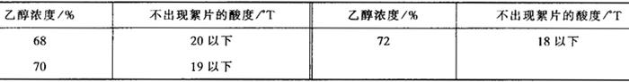 注:(1)牛乳应沿玻璃量筒壁徐徐加入,以免产生泡沫影响测定。 (2)不可使乳稠计与量筒壁相撞,以免结果不准。 2.乳脂肪的测定 参见第二章第一节四脂肪的测定中“巴布科克法”或“哥特里-罗紫法”。 3.酸度(°T)的测定 (1)乙醇法:试管中加入等量的中性乙醇和牛乳(一般各2mL),以大拇指按住管口,颠倒2次不出现絮片者符合下列酸度标准,出现絮片者,表示酸度较大(见表4-2-29)。 表4-2-29 乙醇试验判定