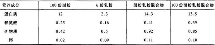 | 释义 | 乳品在焙烤食品中的作用 1.提高了制品的营养价值 面粉是面包、糕点和饼干的主要原料。但面粉中赖氨酸含量较低,维生素含量亦少。乳粉中含有丰富的蛋白质和人体所需的必需氨基酸,维生素和矿物质也很丰富。所以,将其加入焙烤食品中,可提高食品的营养价值。尤其是强化维生素B2和钙质等。乳粉对面粉营养价值的影响见表1-2-16。 表1-2-16 乳粉对面粉营养价值的影响