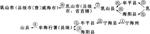 ①1912年称宁海州;1913年2月改为宁海县。②1914年1月,因与浙江省宁海县同名,故改为牟平县。③1941年3月,共产党析牟平县南乡、海阳县东乡组建牟海行署(县级)。④1945年1月牟海行署正式定名为乳山县。⑤1958年10月撤销乳山县,分别划归牟平县、海阳县。⑥1962年1月恢复乳山县建制。⑦1993年7月17日,经国务院批准,撤销乳山县,设立乳山市(县级市),由省直辖。⑧1995年乳山市(县级市)改为由省直辖,地级市代管。