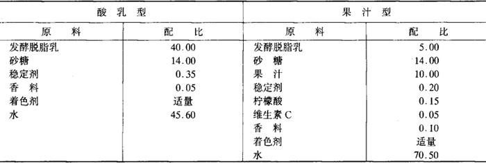 图2-2-8 乳酸菌饮料生产工艺流程图 (2)配方 乳酸菌饮料的一般配方见表2-2-8。 表2-2-8 乳酸菌饮料的配方 单位:%
