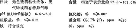 性能 无色或微黄色透明糖浆状液体,有很强的吸水能力。无臭或略有特殊气味,略有咸苦味。混溶于水、乙醇和甘油。其水溶液呈中性。 质量规格(JSCⅠ-Ⅱ)