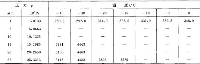 (三)二氧化碳的热容 液体二氧化碳的质量热容数值见表1-2-11。 表1-2-11 液体二氧化碳的质量热容数