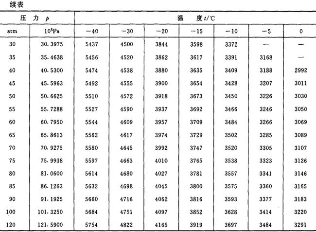 (二)二氧化碳的粘度 二氧化碳的粘度见表1-2-10。 表1-2-10 二氧化碳的粘度 单位:mPa·s