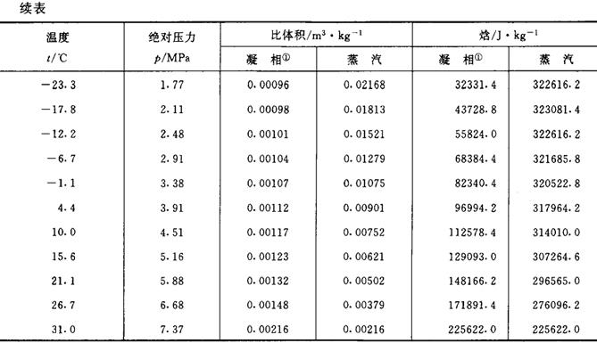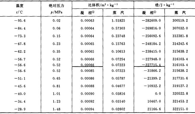 (五)二氧化碳的比体积和焓 二氧化碳的比体积和焓见表1-2-14。 表1-2-14 二氧化碳的比体积和焓
