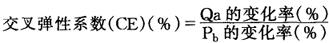 式中,Qa是商品a的数量,Pb是商品b的价格(当一种商品的价格与另一种商品的数量反方向变动时,其系数符号为负)。如果两种商品是替代商品(即一种商品的价格与另一种商品的数量向同一方向变动)时,其系数符号为正。相互独立的商品,因为二者之间没有任何关系,所以交叉弹性系数等于零。