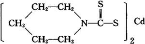 | 释义 | 五亚甲基二硫代氨基甲酸镉,促进剂CPD 【结构式】: