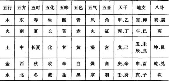 | 释义 | 五行的类比和衍化 五行学说的运用,是以五行的特性来类比归纳或推演衍化认识事物的性能及其间的关系。就是把自然的万物归纳类比为木、火、土、金、水五种性质;把人体的各种组织和功能,归纳为以五脏为中心的五个生理、病理系统。兹举例列表,如表1-6,1-7所示。 表1-6 自然界五行衍化表