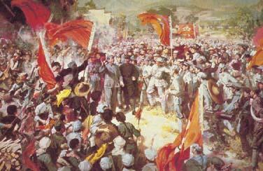 | 释义 | 井冈山会师 土地革命战争中,毛泽东和朱德领导的两支工农革命军于井冈山会合。 1927年冬,毛泽东领导的湘赣边界秋收起义工农革命军,在井冈山创建根据地时,与南昌起义军余部建立了联系。1928年1月,朱德、陈毅与中共湘南特委发动湘南起义,成立工农革命军。3月下旬,国民党军约七个师进攻湘南。 朱德、陈毅率部向井冈山转移,4月下旬,在毛泽东率部接应下,到达宁冈砻市。 两军会师后,合编为工农革命军第四军,朱德任军长,毛泽东任党代表兼军委书记,辖三个师,约一万人。这次会师,壮大了井冈山革命根据地的军事力量,对红军和土地革命战争的发展具有重大意义。
