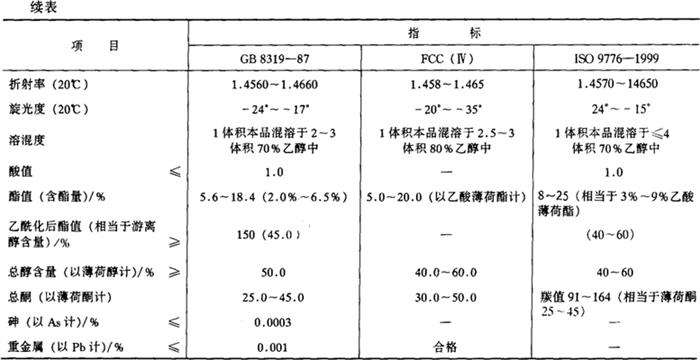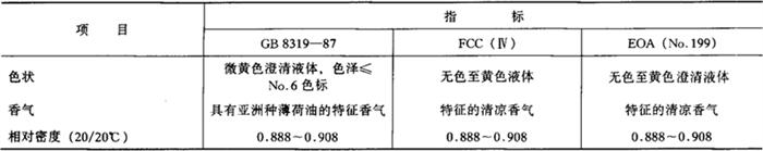 性状 淡黄色澄清液体,香气强烈,呈新鲜清凉的薄荷样香气,使人有清新感,溶于大多数固定油、矿物油和丙二醇,不溶于甘油。闪点75℃。