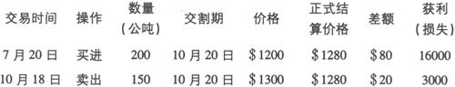 计算: 购进+100×单价$1200=成本 $(120000) 售出(-100)×单价$1300=收益 $130000 所收取的账户利差 $10000 4.3.2 交割期账户——金属发票和账面差额 按照规则,所有合约在交割日都以正式结算价格结束,合约价格和正式结算价格之间的获利或亏损作为账面差额。在账面差额中,合约的重量以公吨为单位(详见第14.6节)。 通过将同一账户内的买卖数量相抵,只有净买入数量才需要接收现货,发票价格为2天前确立的正式结算价格,发票的数量必须与仓单的重量完全相符。下面的例子表明了部分原始多头头寸交割的实际情况: 例 如果一个交易者在10月18日持有200公吨多头头寸,交割期为10月20日,并且打算卖出其中150公吨,而对剩下的50公吨接收现货,则整个交易情况如下所示: 假设 7月20日 购进200公吨3月期合约(交割期为10月20日),价格为$1200/公吨 10月18日 在上午的交易中,以$1300/公吨卖出150公吨 10月18日 正式结算价格是$1280/公吨 10月20日的金属发票和账户差额: