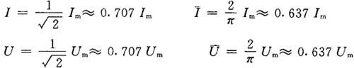 对于正弦电流和电压,其有效值、平均值与其最大值的关系为: