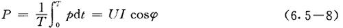 对于交流功率,一般只采用瞬时功率和平均功率两种表示法。瞬时功率表示为 p=ui=Umsin(ωt)Imsin(ωt+φ) (6.5-7) 一周期内的平均功率(有功功率)为: