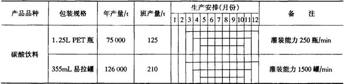 | 释义 | 产品方案实例 不同地区的产品方案分别见表6-4-1~表6-4-6。 表6-4-1 华东地区某饮料厂年产200000t碳酸饮料的产品方案