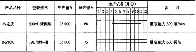表6-4-3 南方地区某饮料厂年产乌龙茶8000t、纯净水35000t产品方案