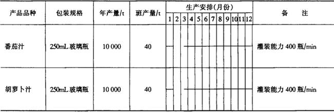 表6-4-5 华中地区某饮料厂年产蔬菜汁20000t产品方案