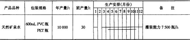 表6-4-6 西北地区某饮料厂年产10000t天然矿泉水产品方案