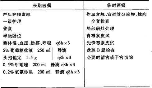 说明:(1)抗生素可根据患者产时、产后情况,用药史及药敏情况进行调整应用,量要足、效力要强。