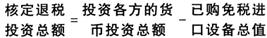 国产设备是指中华人民共和国境内企业生产的设备。核定退税投资总额,按以下公式计算: