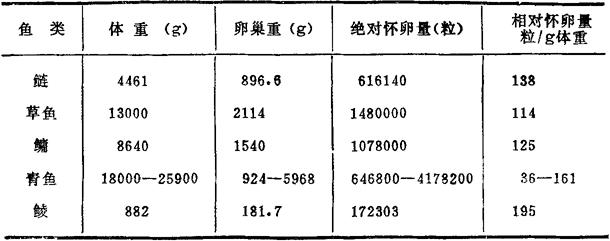 四、繁殖力 主要根据鱼的怀卵量和人工繁殖条件下的产卵量来评价。 1.池塘养殖条件下的怀卵量(表24—1) 表24—1 鲢、鳙等鱼池塘饲养下的怀卵量