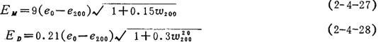 式中 Q——水面蒸发速度(mm/月) e0——液面温度的饱和水汽压力(Pa) e——液面上空气中的水汽压力(Pa) H——大气压力(Pa) A——比例系数 上式的基本含义为:水的蒸发速度与水体液面及上界空气水汽张力之差成正比,与水面上大气压力成反比。当以大气压H为常数忽略其影响时,可改写为: Q=A(e0-e) (2-4-19) 以后的研究都证实了Q与(e0-e)的线性关系,称之为道尔顿定律。自然蒸发中风的影响是不可避免的,设蒸发量为E,风速为w,E与w的函数关系为f(w),即可成立计算蒸发量的下列基本式: E=A(e0-e)f(w) (2-4-20) 式中的f(w)在不同的实验结果中得出的函数式有A+Bw、A+Bwn、 (一)查依柯夫(Б.Д.3айков)水池、水库月蒸发量计算式 EM=0.2N(e0-e200)(1+0.85w100) (2-4-21) EM=0.15N(e0-e200)(1+0.72w200) (2-4-22) 式中 EM——月蒸发量(mm) N——月内天数 e0——液面温度的饱和水汽压力(mmHg),1mmHg=133.322Pa e200——200cm高度空气中水汽压力(mmHg) w100、w200——100cm及200cm高度风速(m/s) (二)重庆水文站不同蒸发器月蒸发量计算式 E100=0.14N(e0-e200)(1+0.58w200) (2-4-23) E20=0.18N(e0-e200)(1+0.43w200) (2-4-24) 式中 E100、E20——100m2及20m2蒸发器月蒸发量(mm)其他代号同2-4-21式,但e0、e200单位为mbr又据研究,全国20m2蒸发器可用下列综合式: E20=0.2N(e0-e200)(1+0.32w200) (2-4-25) (三)华东水利学院水池水库日蒸发量计算式 ED=0.24(e0-e200)(1+0.14 式中 e0、e200单位为mbr (四)克里次基(C.H.Kричкий)、曼凯里(M.Φ.Meнкeлв),罗辛斯基(К.И.Pоccинcкий)的计算式