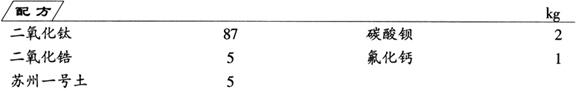 将二氧化钛在1100~1300℃下煅烧2h,冷却后磨碎,研细,再加入其余全部组分共同研磨均匀,压制成型,在1260~1370℃下用氧化气氛烧成,即得电容器陶瓷。