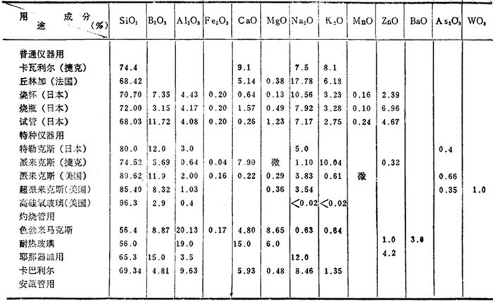 仪器玻璃成分