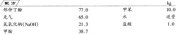 (1)合成氯甲酸邻仲丁基苯酯 将邻仲丁酚投入反应釜,再投入甲苯,开动搅拌,控制温度在-5~0℃,投入液态光气,然后在45~90min内,按邻仲丁酚∶NaOH=1∶2.2~1∶2.4(摩尔比)先慢后快地逐渐加入20%浓度的烧碱水溶液,加完后,保温反应15~30min,出料,静置,放去水层,便得到产物的甲苯溶液。