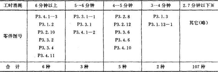 (2)统计零件工时消耗,找出工时消耗多的项目列成表2。 表2
