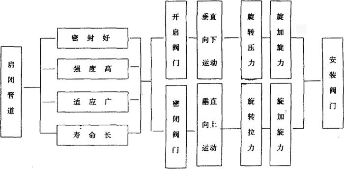 | 释义 | 价值工程在开发X型衬玻璃隔膜阀中的应用 1981年,某阀门厂设想:金属管件是阀门产品的配套件,其材质成份、物理性能与阀门产品的材质成份、物理性能基本一致。既然金属管件内壁衬玻璃新工艺是成功的,那么,将这项科研成果引回到金属阀体内腔上,应该说是可行的。 根据以上的设想,选定了X型衬玻璃隔膜阀系列产品作为新产品开发的重点产品。他们按照价值工程的原理和要求,对阀门的功能进行了系统的分析,并排出了功能系统(见图)。