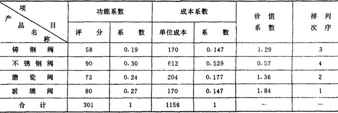 再根据功能评价系数和产品成本系数,计算出各种阀门的价值系数(见表2)。 表2